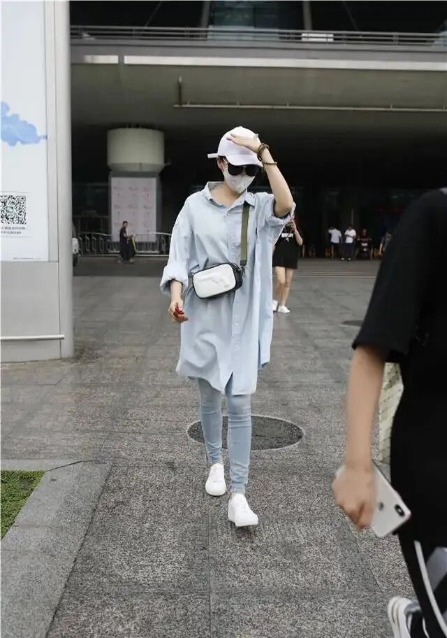 在进行穿搭时,许晴很巧妙地采用了“下衣失踪”的穿法,就是利用长款上装与超短裤进行搭配,营造出一种没有穿裤子的既视感,这样能凸显出穿搭者身材上的优势,也有助于秀出大长腿,显瘦又显性感活力,对个子矮的姐妹也十分友好,它能起到优化身材比例的作用。