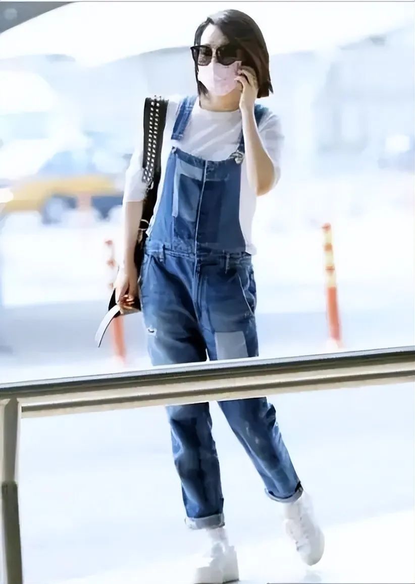 越是到许晴这个年纪,越要避免刻意扮嫩的嫌疑,可以适当利用个性元素来强调一种青春的叛逆感,比如白色T恤与补丁牛仔背带裤的搭配,后者巧妙融入了故意做旧的设计,这就能张扬出一种不羁与野性,牛仔质地略显硬朗,穿在身上能起到修饰身材的作用,也不会有太大的穿搭压力,任何身材都可以驾驭,还能凸显出满满的青春活力感。