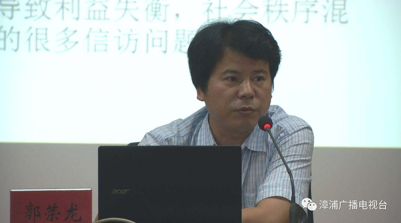 随后,漳州市人民检察院金融检查处处长郭荣龙以《法治思维在社会治理中的运用》为题,从法律在诉讼纷争冲突中的制度设计、社会治理中出现的乱象以及法治思维在社会治理中的运用等方面,为各部门合法合理运用法律、高效行使职能提供借鉴思路。报告观点鲜明,语言生动,深入浅出,对领导干部提高遵规守法自觉性,增强法制观念,转变作风很有启发作用。
