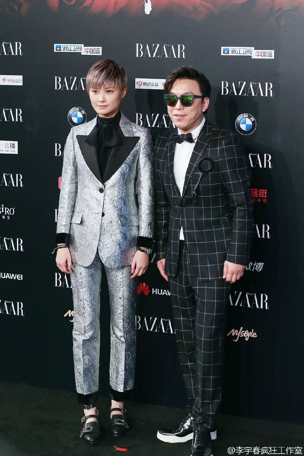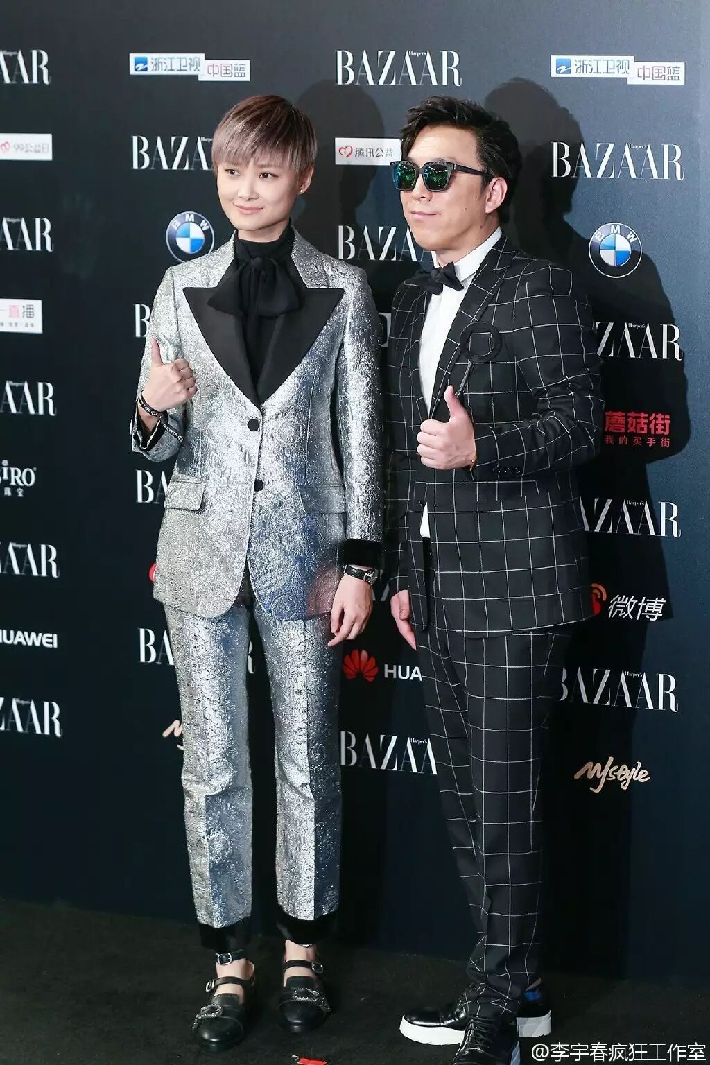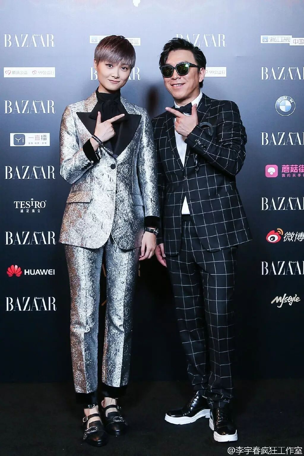 李宇春与黄渤一同亮相BAZAAR明星慈善夜红毯, 一身GUCCI 2017早春系列的银色西装礼服,英姿飒爽,帅气十足!