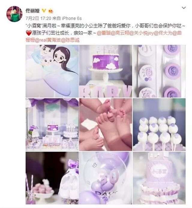 聚会结束后,高云翔夫妇的好友佟丽娅也在微博晒出一组董璇女儿满月宴现场照片,并发文称:“‘小酒窝’满月啦~幸福漂亮的小公主除了爸爸妈爱你,小哥哥们也会保护你哒~愿孩子们茁壮成长,亲如一家~”