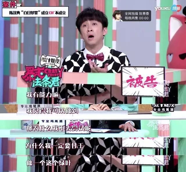 昨天播出的《暴走法条君》中,陈汉典的表现更是向我们展示了“白日梦”的正确打开方式。