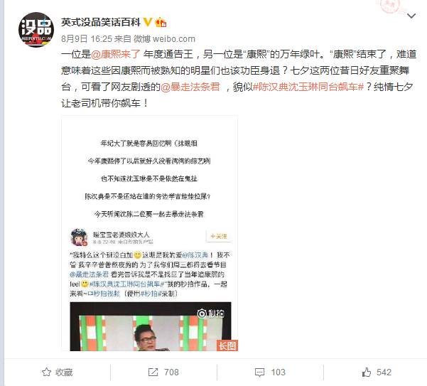 此刻的围观群众主要分为两拨:老司机队与康熙粉丝队。对两人的同台,老司机队的队员们纷纷表示:啊好变态啊好污啊好喜欢!而康熙粉丝队队员则开始回忆起往事,细数康熙那些年。