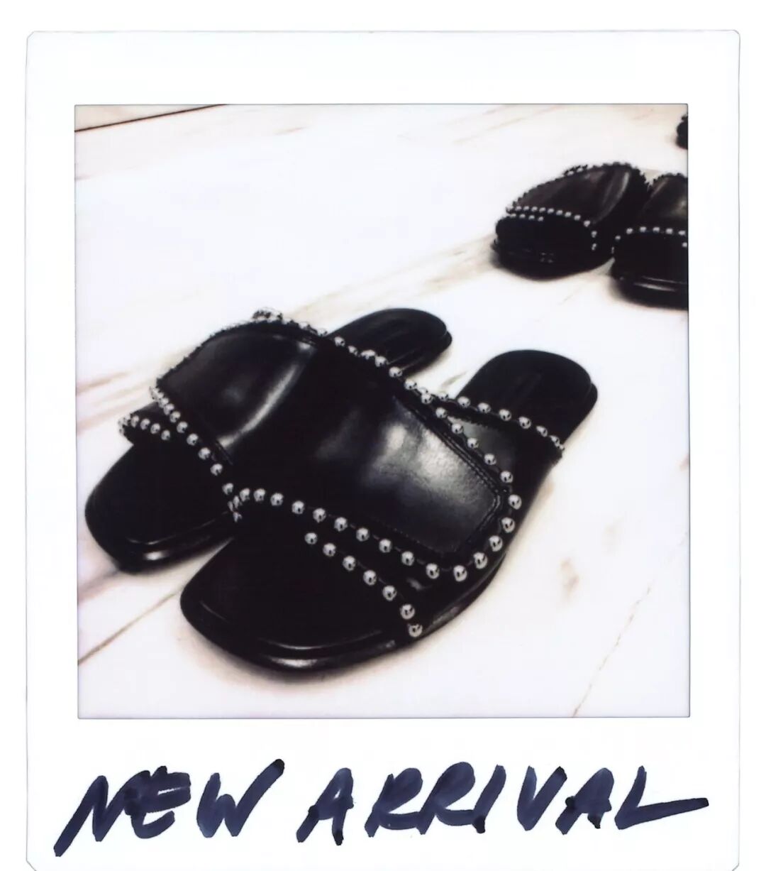 什么叫一片云呢?通俗易懂地说就是脚面位置用一条宽带装饰的款式,极简无比。Alexander Wang去年夏天推出的这双一片云拖鞋加以铆钉装饰,酷炫值爆表,也掀起了的抢购热潮。
