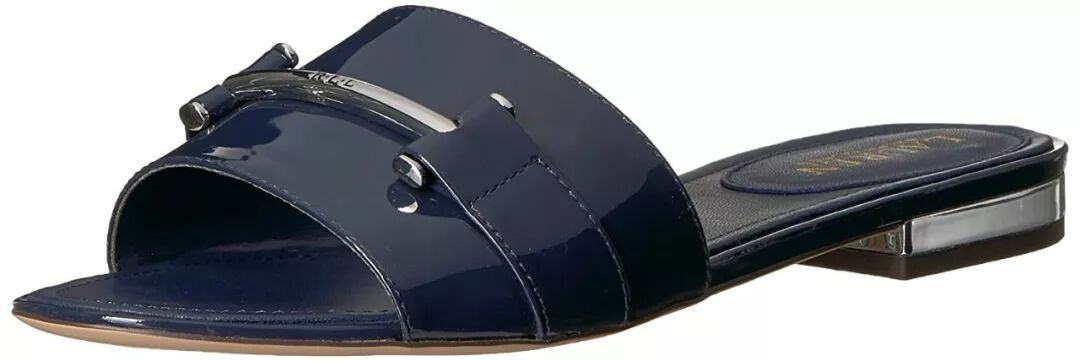 Ralph Lauren拖鞋采用低调中带着张扬的漆皮面料,在鞋面上用金属扣点缀,有一种严谨的职场气息,搭配裤装率性无比。