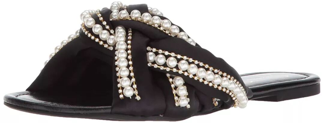 Jessica Simpson这双拖鞋在拧成“麻绳”的缎面上加以珍珠点缀,名媛气十足,淑女首选。