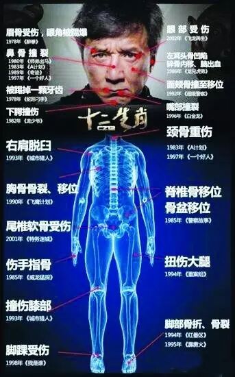 我们从中可以看出他在拍戏时所受的伤痛。