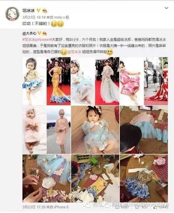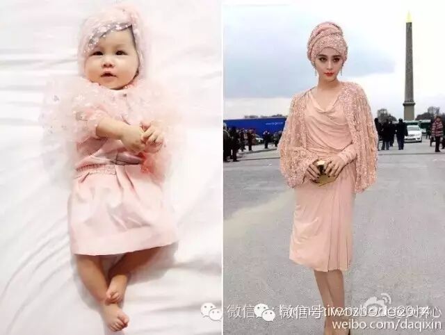 微博认证为电视导演的齐心,晒出女儿COS范冰冰经典造型的照片,范冰冰也转发微博,并大赞萌娃可爱。