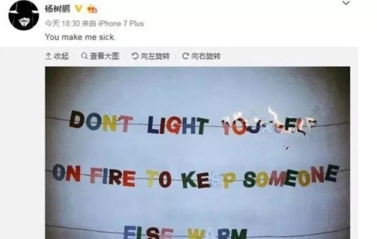 可能张歆艺这话不小心被前夫杨树鹏看到了,隔天他就发了微博:You make me sick!这句话翻译过来大概的意思就是“你让我恶心到了”,张歆艺出道多年,虽然名气是越来越大了,但她就像是个招黑体质,网友一直有人黑她,但她也是越黑越强大。