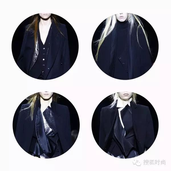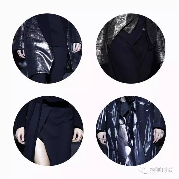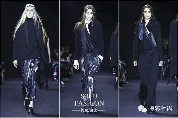 本季设计依然坚持品牌历史传统——从西装套装就可见端倪。黑色的休闲西装,藏匿着狂傲的凌乱马甲和衬衫,印证着Ann Demeulemeester品牌诚心塑造的独特女性气质。同时本季还运用大量的褶皱,搭配上抽象的白色印花,神秘气息有增无减。或许女性就正如这一件又一件浪漫的衣物,深邃迷人,果敢又不简单。