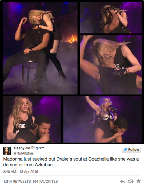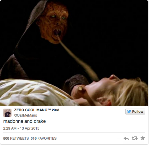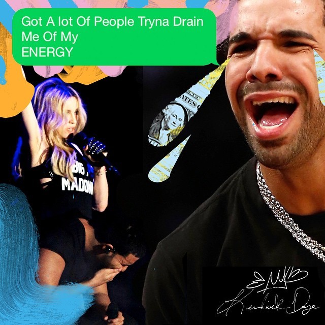 Madonna跟个摄魂鬼一样,尽情地吸走了Drake的灵魂。