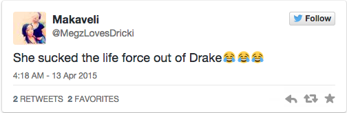 她吸走了Drake的生命。
