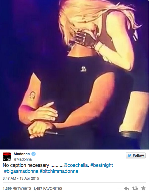 最后没多久,Madonna亲自在在Twitter上传了强吻的照片,并留言:“配文什么的都不重要”。