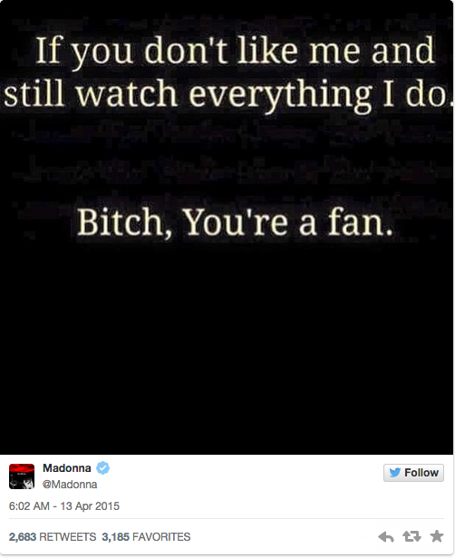 相隔不久,麦当娜再发布一则推文回应她的haters。