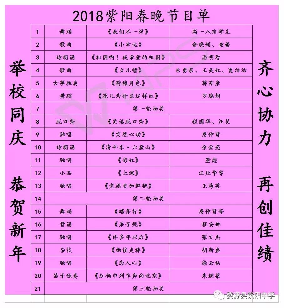 1、《我们不一样》(大紫阳学子来到晚会现场助兴):我们不一样,因为我们是全国民办百强学校;我们不一样,因为我们是省优秀重点中学;我们不一样,因为我们是大紫阳。