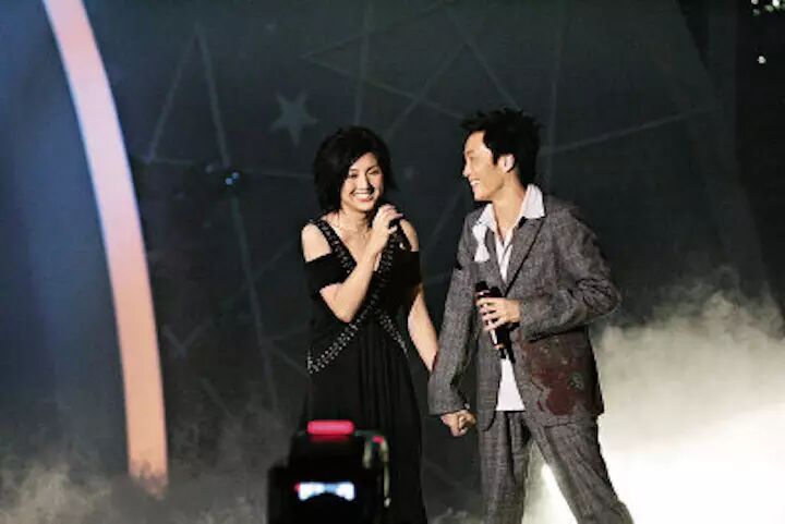 女方开小型音乐会男方做特别嘉宾,牵手甜蜜合唱,唱的就是现在每当现场演场杨千嬅都哭得唱不下的《爱人》。开心不到一年,在2000年就传出二人分手的消息