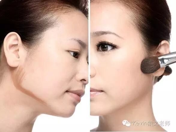 如果脸缘的线条会不明显,好像脸和脖子连成一片,会使脸看起来很大。所以想要侧颜也美美哒,可以用修容的方式将腮帮子下缘的界限修出来。