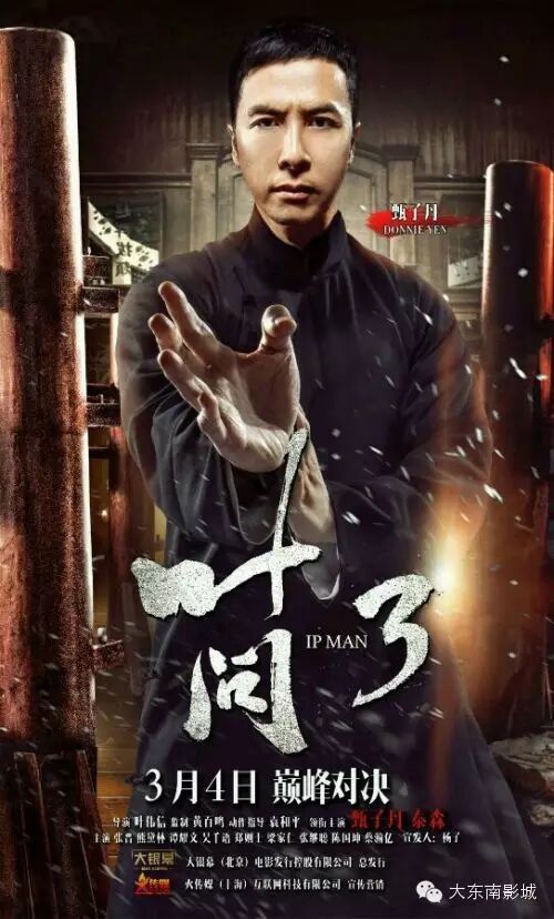 将于2016年3月4日中国内地公映的《叶问3》未映先火,功夫巨星甄子丹PK一代拳王泰森,更有金像奖最佳男配张晋加盟,中西对决一触即发,真枪实战的对决,超水准的动作效果,让内地影迷热血沸腾,翘首以待,3月份内地电影市场势必迎来新一轮的洗牌。
