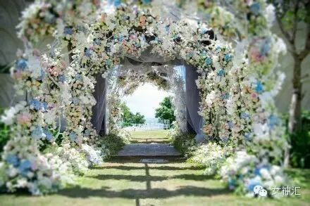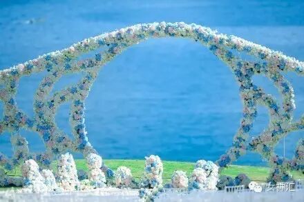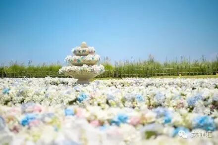 大家看,婚礼上的鲜花是包了6架飞机从厄瓜多尔、荷兰空运而至,用50万支花材构建的现场的。