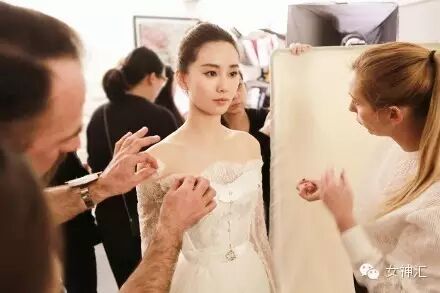 婚纱由Carven品牌的20位巴黎工匠师3个月耗费逾 500 小时完成的,上面绣有诗诗的名字,整条婚纱裙上的蕾丝刺绣花型也是根据诗诗的意愿完成的!