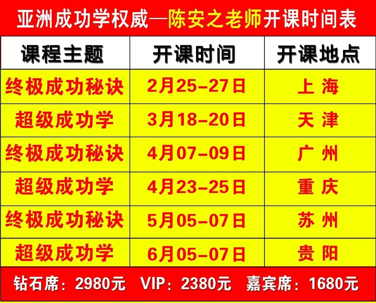 如果您读到现在,您就应该知道,所有这一切都是可以实现的,上海、贵阳、广州、重庆、天津、苏州《终极成功秘诀》课程 正在这儿等您!!!……但是,您必须立刻采取行动! 马上行动吧!