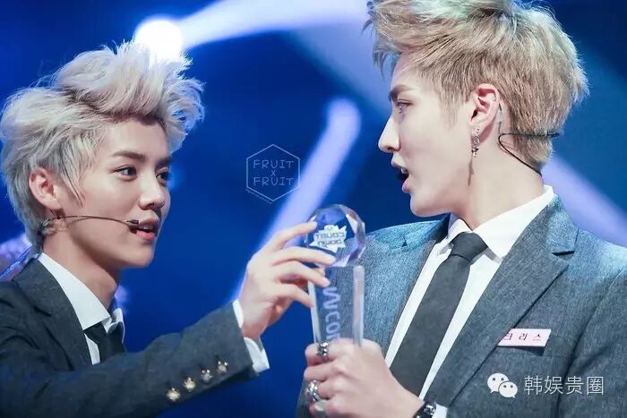 牛酸酸乳音乐风云榜年度盛典那晚给前辈颁奖的时候,工作人员是把奖杯就近递给鹿晗的,然后鹿晗立马转头找吴亦凡,搂着吴亦凡的腰把他推出去,让他去颁奖。