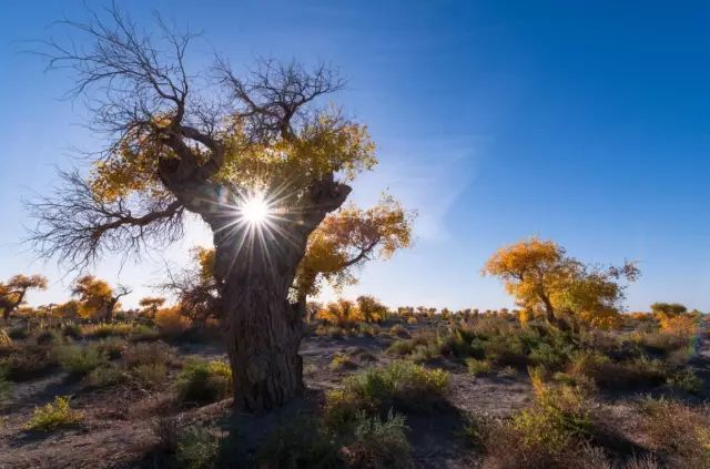 六人合而不抱的大树,四千年不死的树精,六千年不倒的树怪,这就是最独一无二的伊吾胡杨。