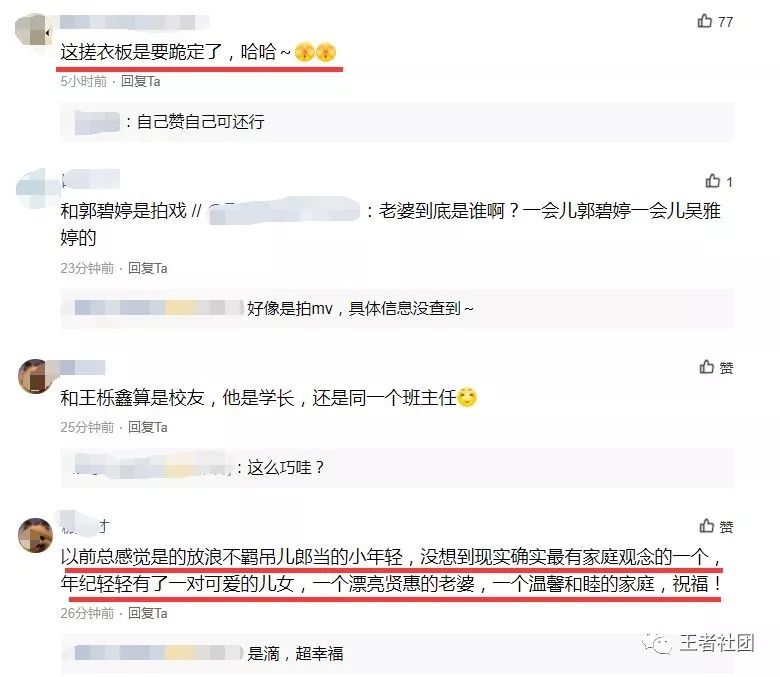 还有的表示:这样说,很伤老婆心。其实王栎鑫与老婆吴雅婷日常互黑互怼,关系很好,相信吴雅婷是不会那么做的。