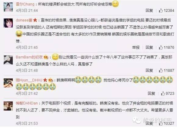 当他出面道歉之后,评论里也是褒贬不一,后来就有粉丝出来替他澄清:电影宣传的时候韩庚说当时电脑花钱租的,后来毕业了找不到人了,他和朋友就卖掉了,这是他觉得青春时期做的很后悔的事情。