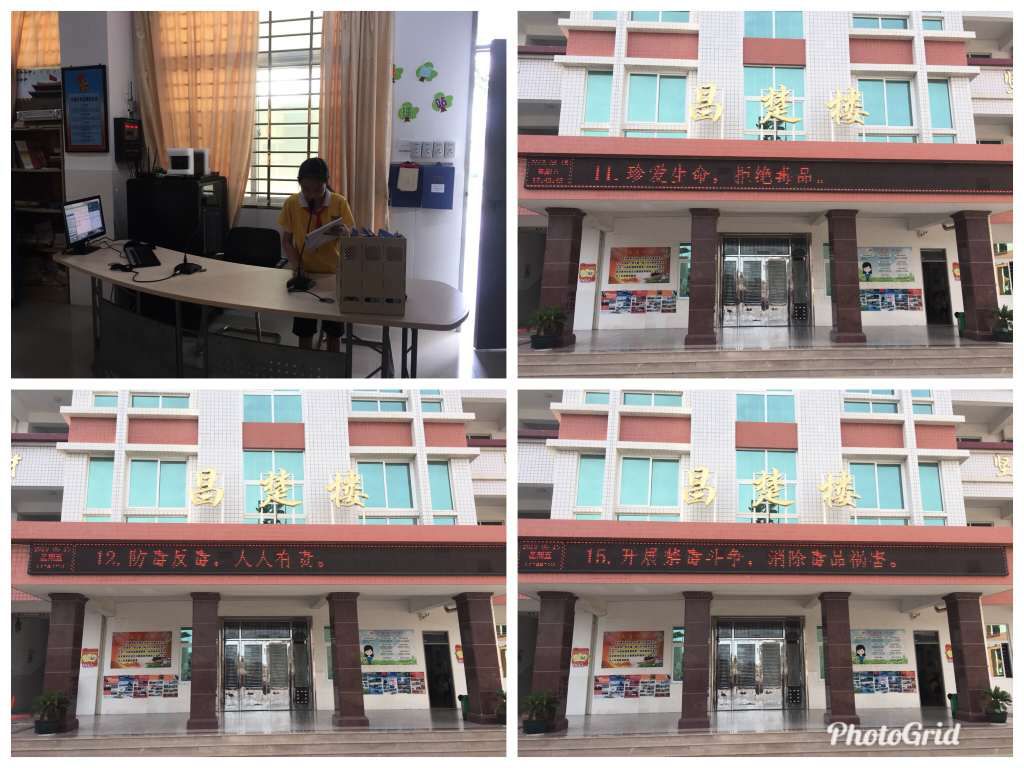 5.利用LED播放禁毒宣传标语,营造浓厚的校园禁毒氛围;利用校园广播,广播相关资料,让全体学生在故事中的真实事例中感受了毒品的危害,接受到了深刻地教育。