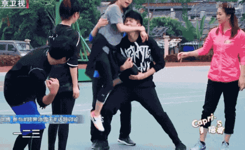 一开始错把脚踝护具戴到手上,其他嘉宾还纷纷效仿,呆萌姐姐惹了个小笑话,但却拉近了八位明星嘉宾的距离。