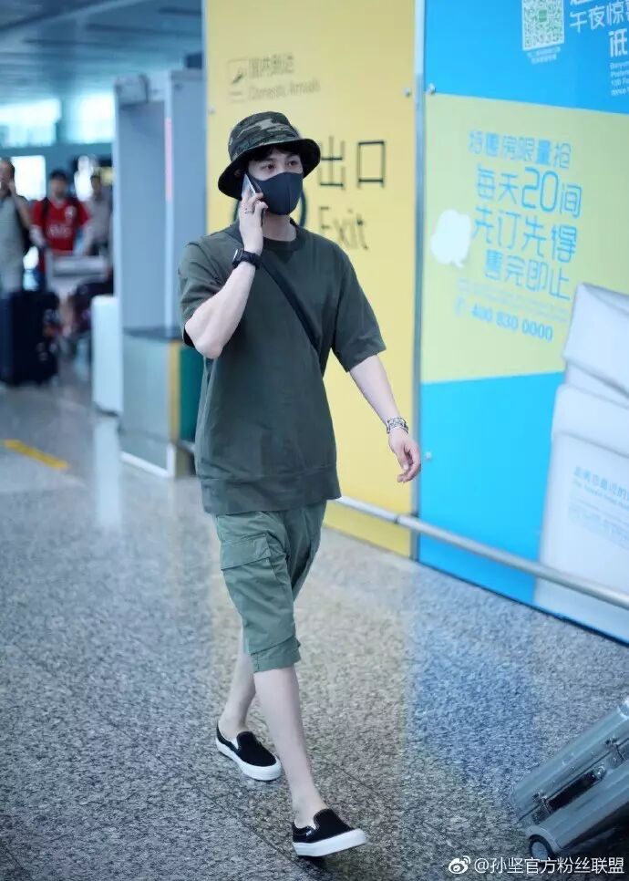 看了这么多明星机场街拍,井宝这身应该算最凉快的了,短裤短袖才算是真正的夏天嘛~而且看他这么搭我发现,硬朗的迷彩和斯文的浅色裤装其实也可以很搭的。