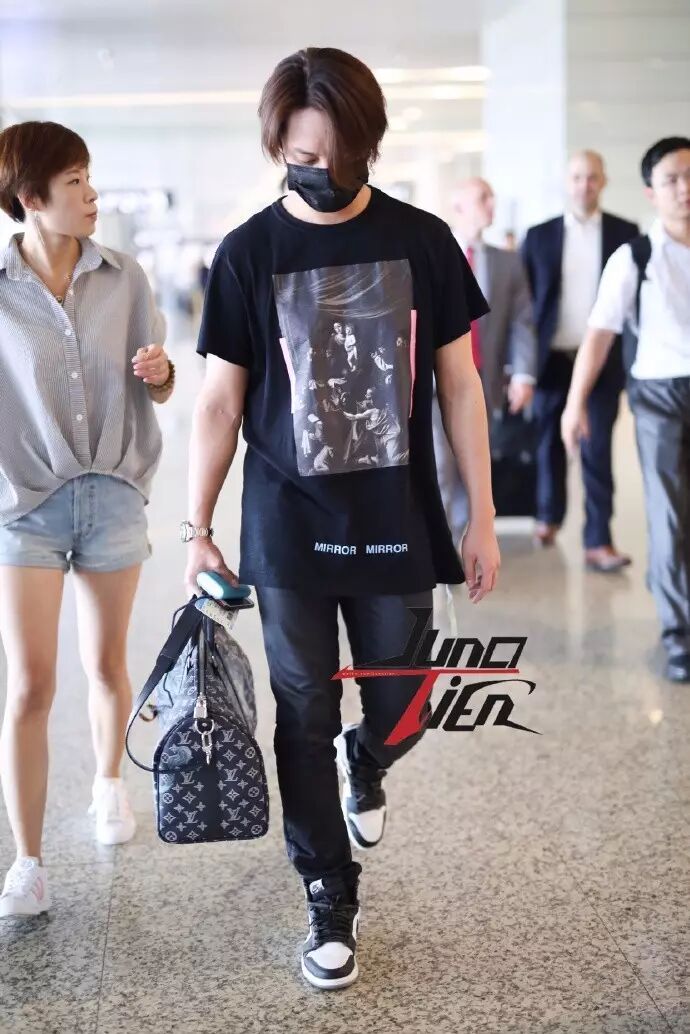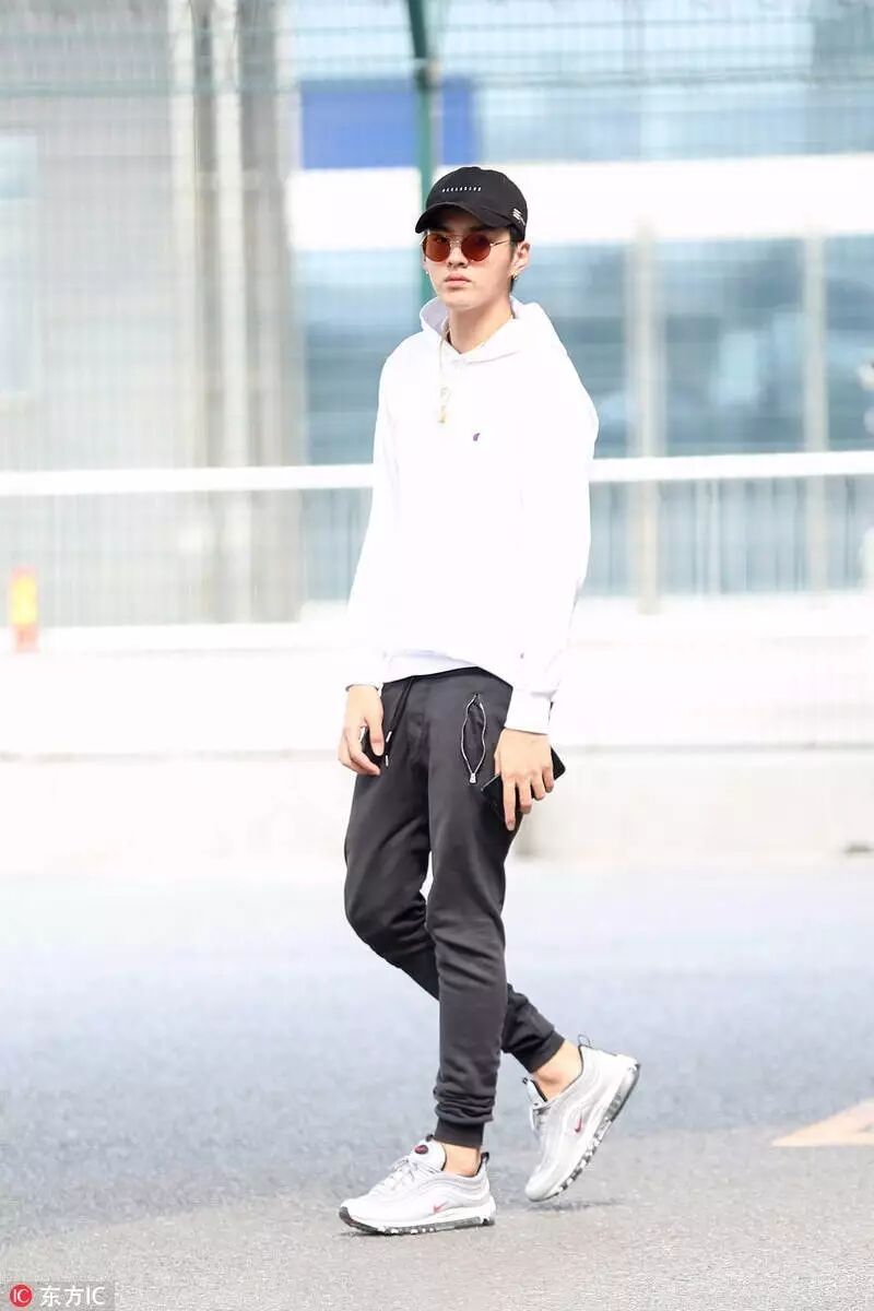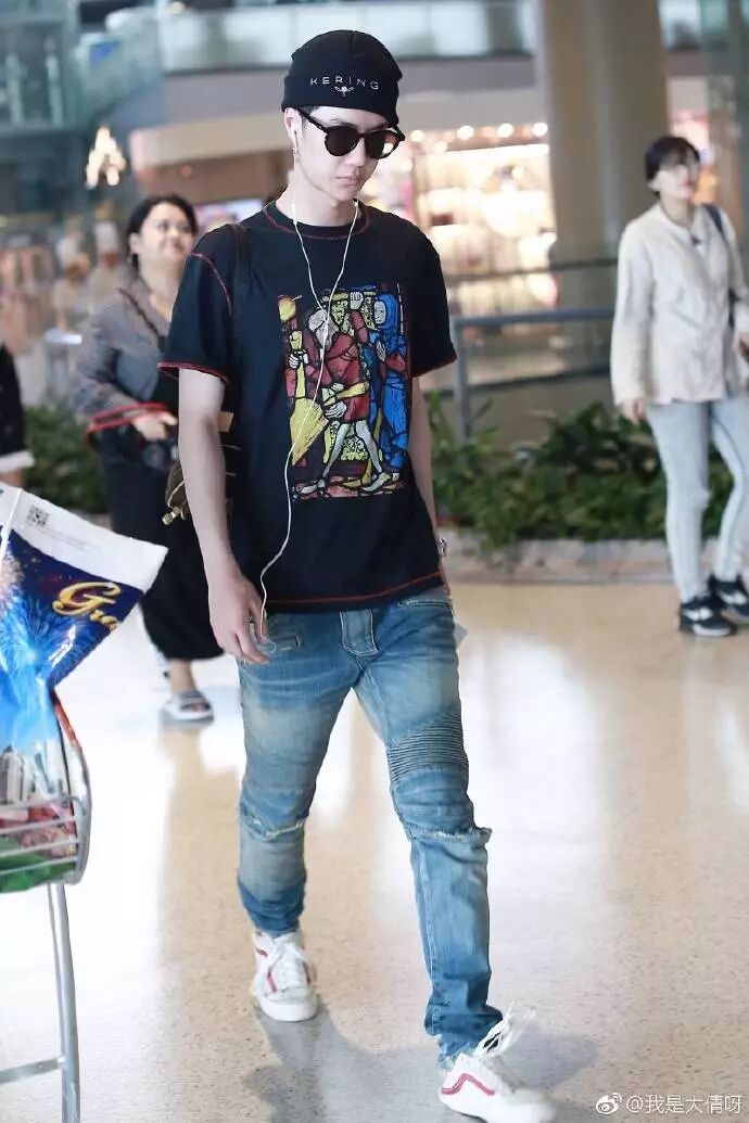 而另外一套机场造型就是他日常比较偏街头的风格了,特别是脚上的那双VANS,绝对真爱无疑。