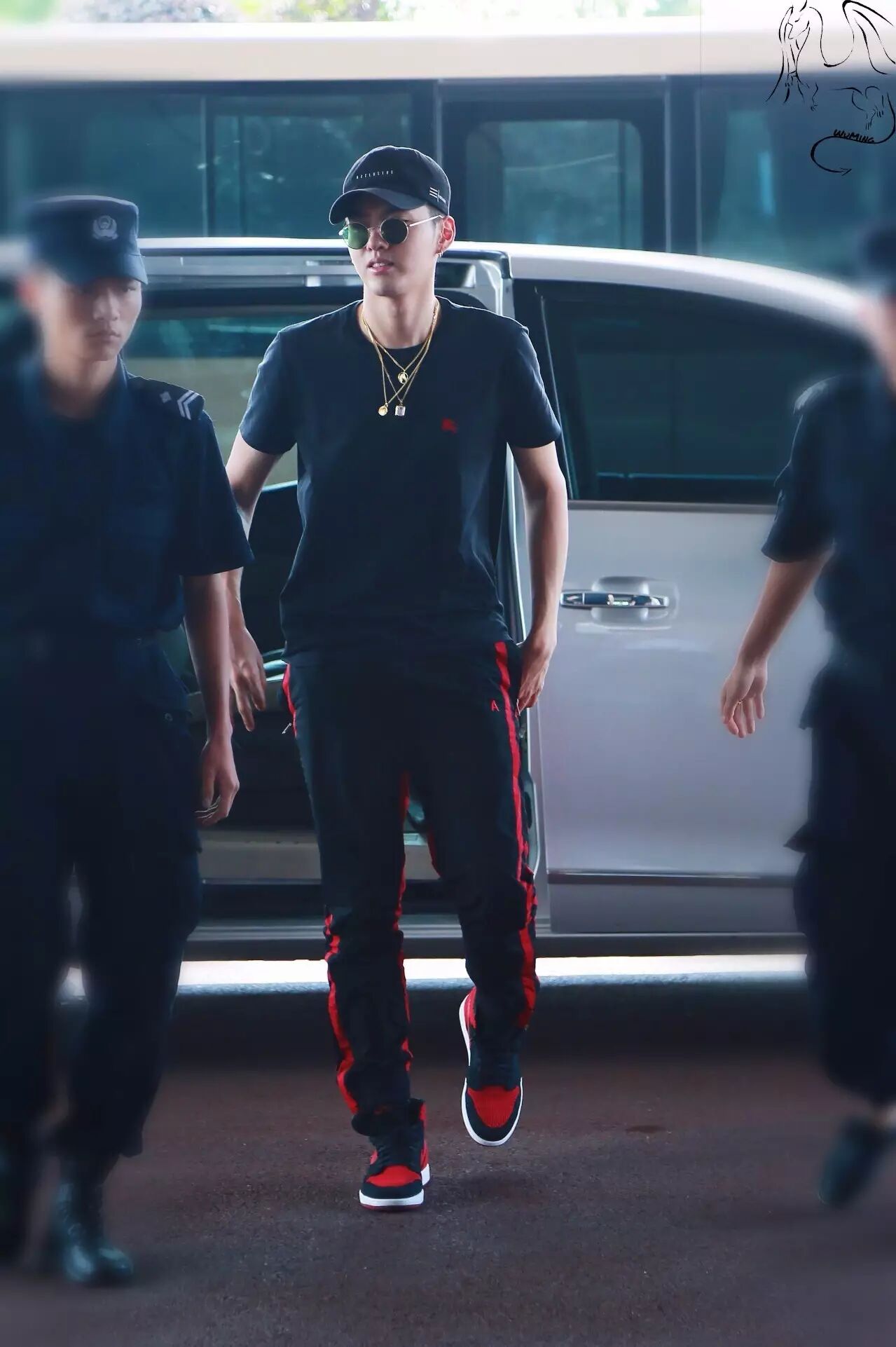 本周飞国外拍戏这身应该是为了长途飞行,所以主打舒适。虽然是一身黑的普通装束,但是依旧是帅的。只能说不吹,身材比例好真的穿啥都好看。