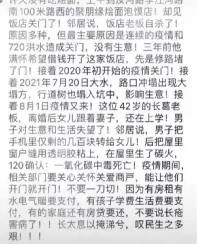 结果到了店铺才听闻邻居说,餐馆老板烧炭自杀了: