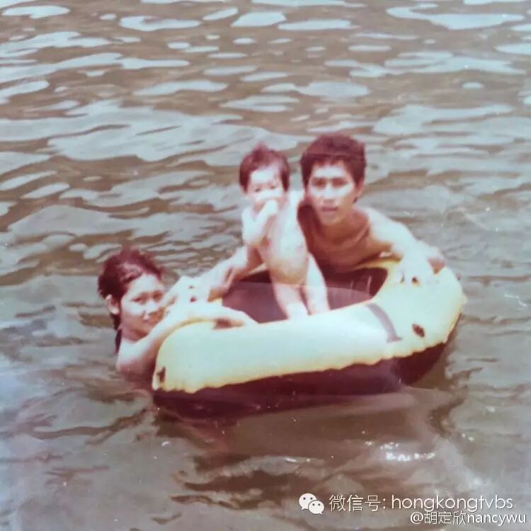 胡定欣今日下午在微博贴出婴儿时期裸泳照,没穿泳衣的她咬手指晒萌,在父母扶持下站在充气浮艇上,她留言道:“我件泳衣呢?”