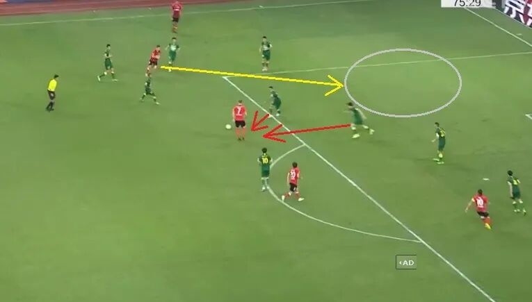 说完了全局,再来看细节。重点提一下金玟哉,国安的两个丢球与其有直接的关系。先看第一个: