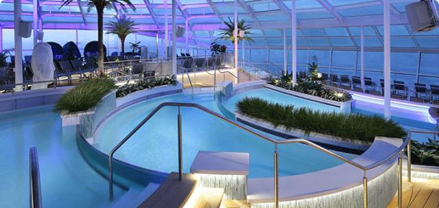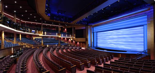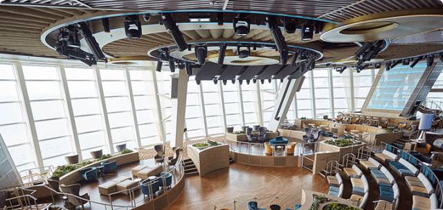 高科技与娱乐的无缝融合,硕大高挑的空间伴随你日夜变迁的海上旅程。白天,透过两层半甲板挑高的落地窗,美景一览无余,270度的玻璃幕墙自助调节室内光线。夜晚,落地窗转变换成全息投影幕,结合当今先进的vistarama数码投影技术,让乘客体会引人入胜的跨界表演和灯光秀。