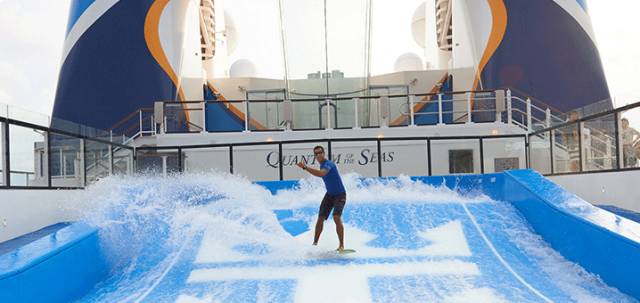 在游轮上乘风破浪,让自己在极速奔腾的12米长造浪模拟器上“飞”起来。不要戴任何珠宝首饰,建议穿紧身泳衣或鲨鱼皮泳衣,适合各级冲浪者。