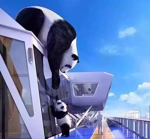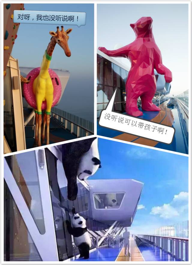 作为“量子系列”的第三艘游轮,“海洋赞礼号”在外形上区别于其他姐妹游轮的,莫过于位于15楼栖于“海上多功能运动馆”顶端的“熊猫妈妈与宝宝”。这对萌物分别高达10米和3米,总重约6.5吨,旨在祝福所有与它们互动的游客平安富足。