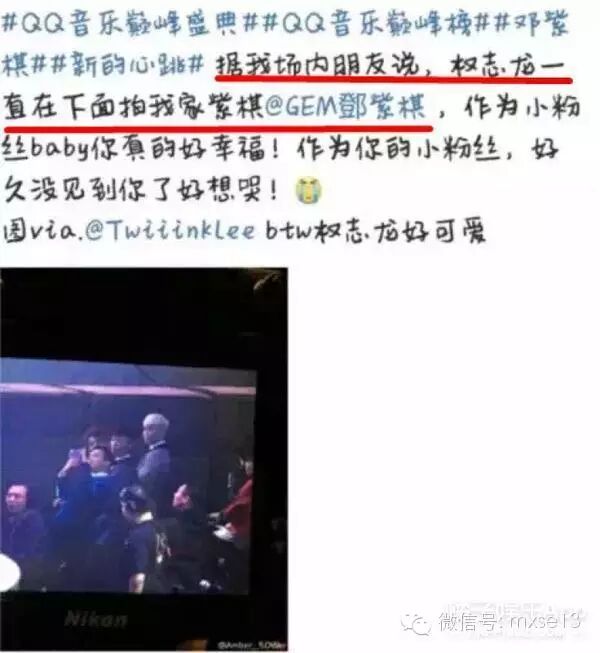 因为你看,还有人说,邓紫棋在表演的时候,权志龙一直在台下拍照呢!!