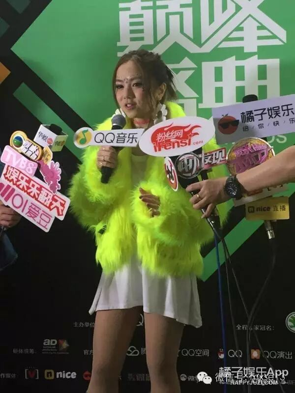 后来表演结束,邓紫棋到后台接受媒体采访!