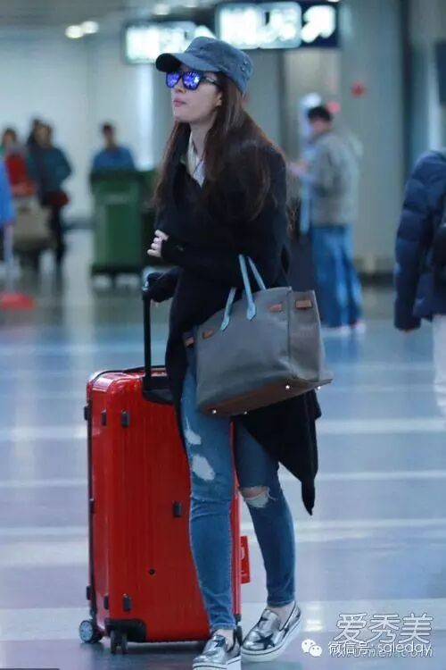 刘亦菲刚刚拍完电影版的《三生三世十里桃花》,现身机场时,身穿潇洒的黑色外套配破洞牛仔裤和Stella-McCartney银色坡跟鞋,帅气而低调。