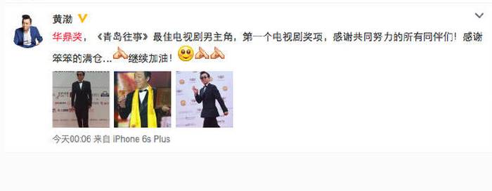 第19届华鼎奖中国百强电视剧满意度调查发布盛典在成都举行,黄渤获华鼎奖视帝,华鼎奖主席王海歌,第19届华鼎奖评审会主席斯琴高娃,演员黄渤、马伊琍、高云翔、蒋欣、王子文、萨日娜、谭耀文、王耀庆、佟丽娅等近百位明星名流莅临。最终,《琅琊榜》摘得中国百强电视剧第一名,中国百强电视剧最佳男女主角分别由《青岛往事》的黄渤和《北上广不相信眼泪》的马伊琍摘得,郑爽蒋欣佟丽娅齐获奖 。