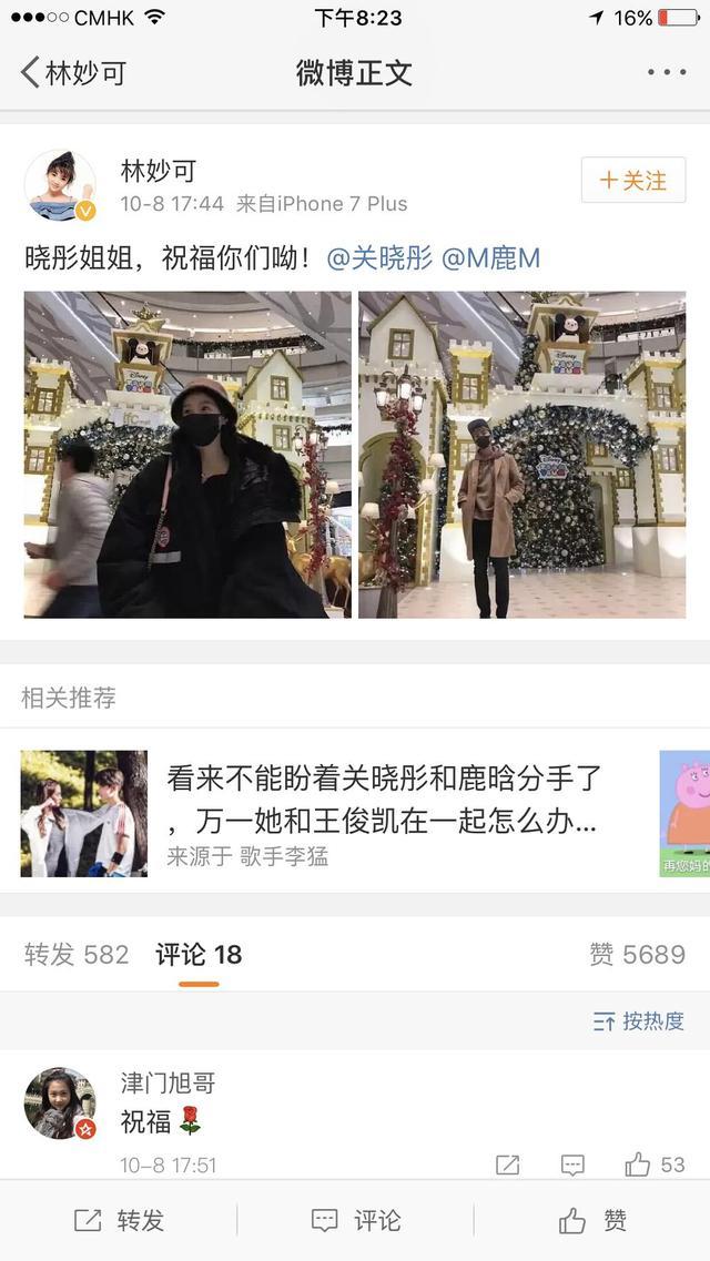 林妙可配的图片,是粉丝们扒皮鹿晗与关晓彤恋爱时间线的重要证据之一。