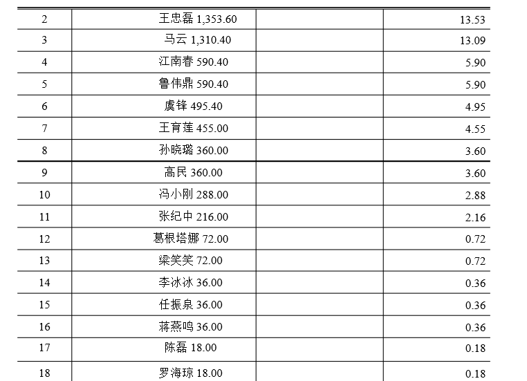 (华谊兄弟招股书中明星发起人出资比例)