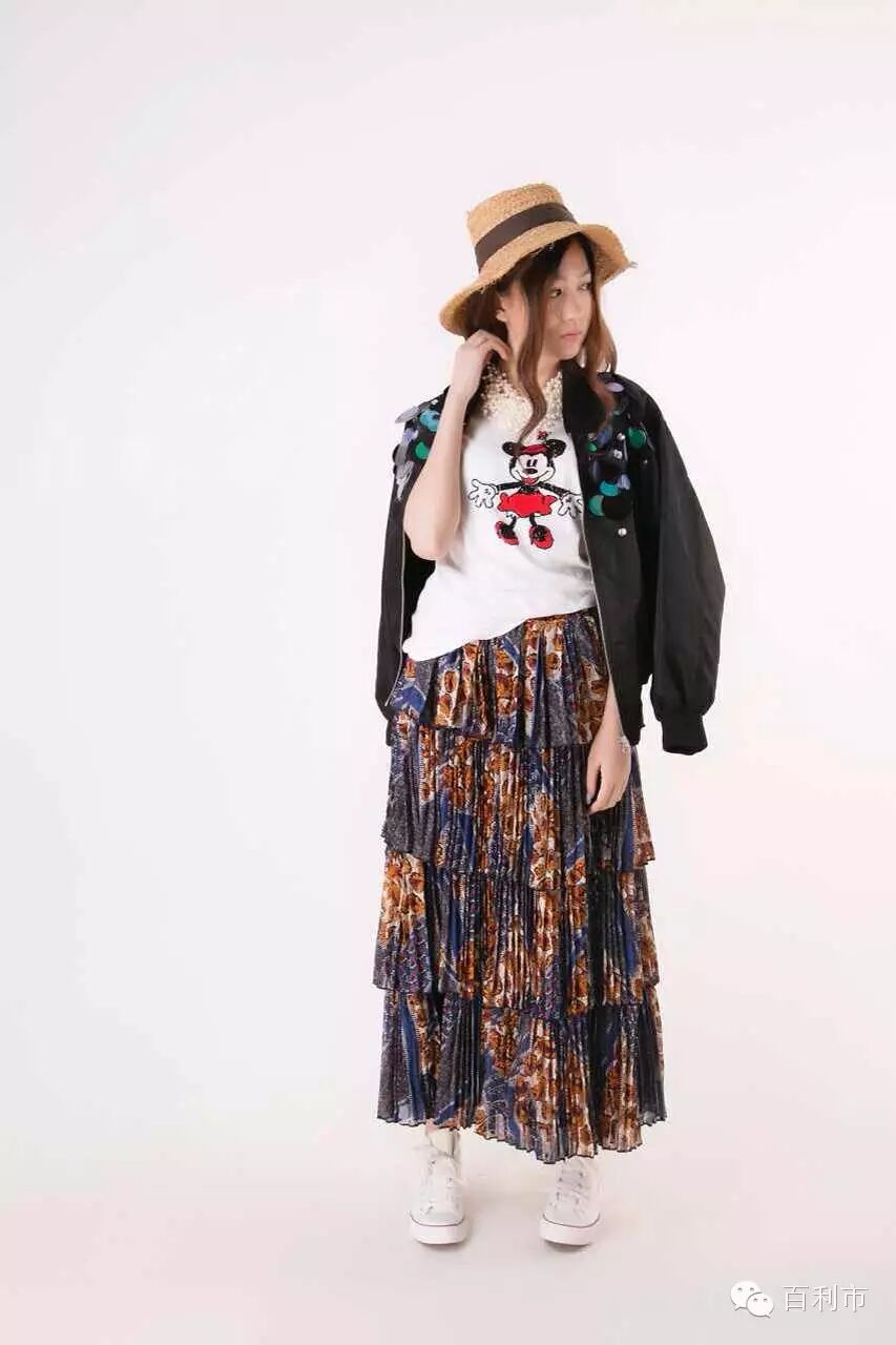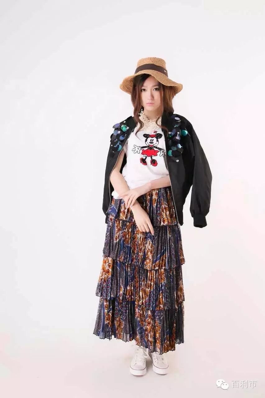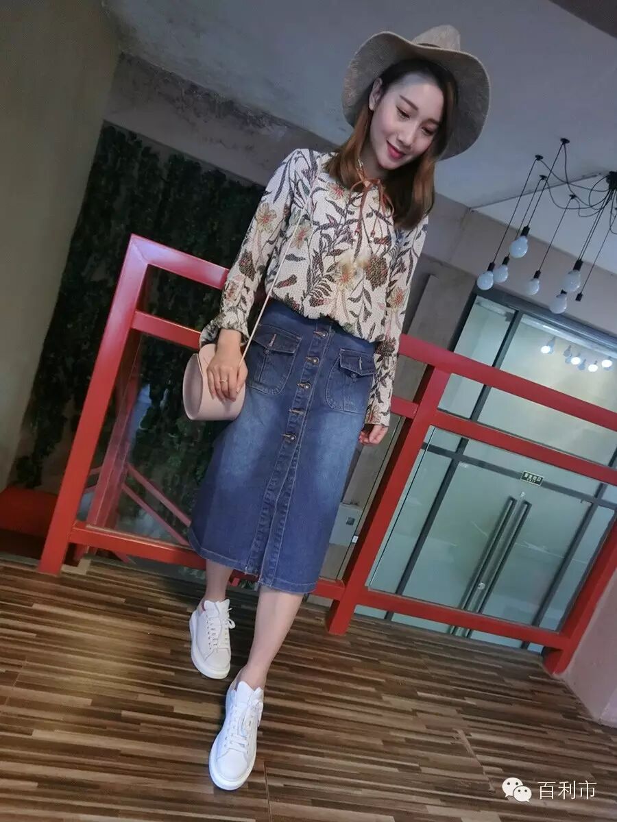 印花喇叭袖T恤,满身的印花仿佛置身在花丛中,尽情享受这浪漫感吧,喇叭袖无疑是这件衣服最大的亮点,搭配复古排扣牛仔裙,优雅的不行。