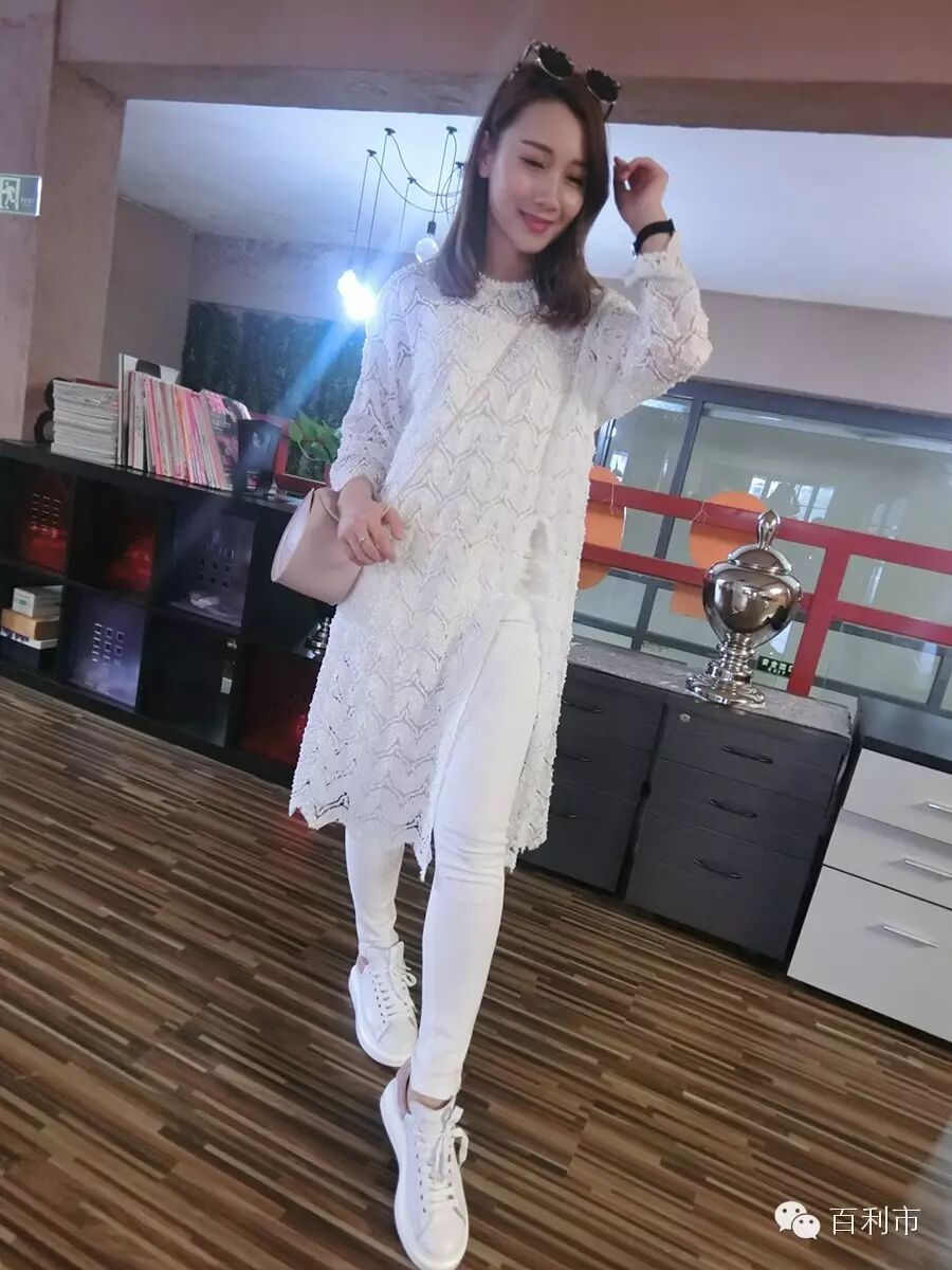 蕾丝棒球款式外套,轻薄的蕾丝,在炎热的夏季你可以当防晒服穿哦!中性又女人都集中在这件衣服上了。