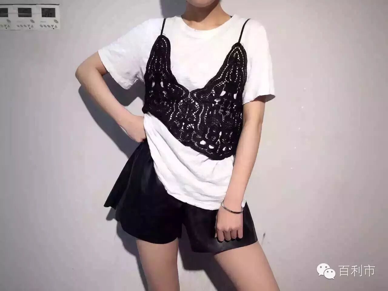 蕾丝小件+T恤两件套,一件纯T太过单调,加上蕾丝小件既女人又青春,而且它可以搭配各种裤装、裙装。