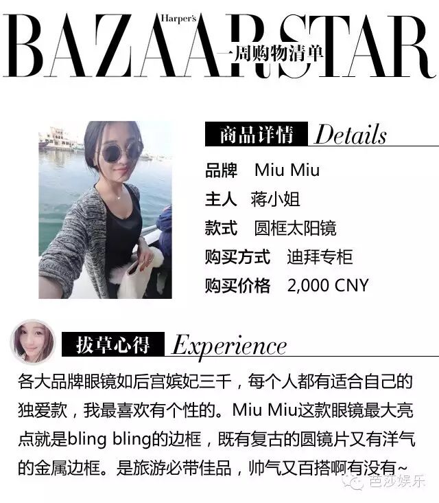 蒋小姐的圆框太阳镜复古与时髦结合,也是要多好看有多好看,正在考虑夏天选什么样墨镜的妹子不妨参考一下